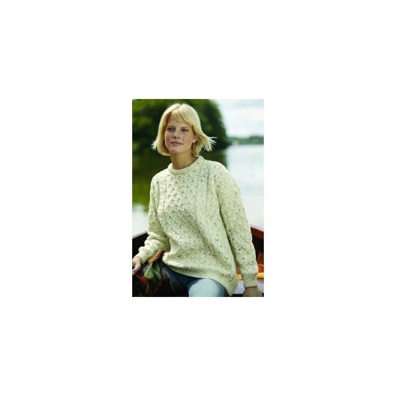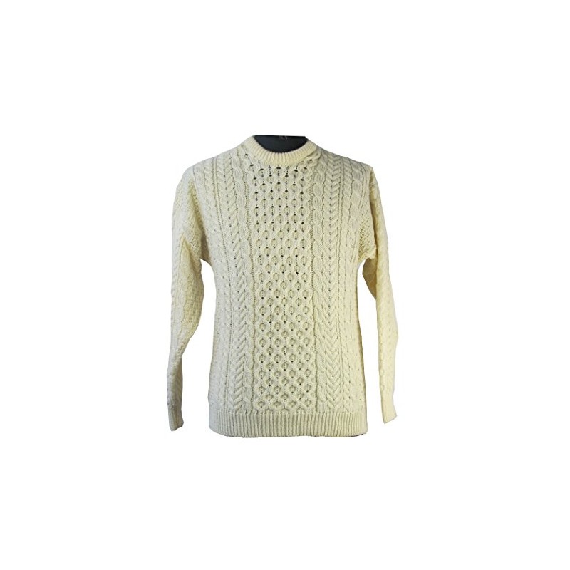 100% Natural Wool Crew Neck Aran Sweater Natural, XXL