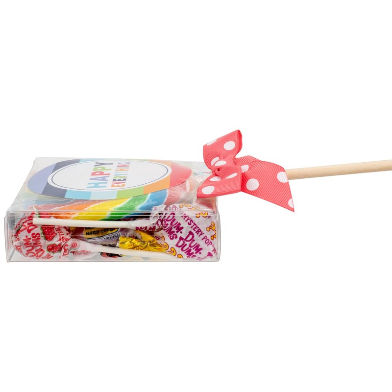 - Our Mix Up Pops are always a crowd favorite. We take a 3 inch Whirly Lollipop and put it in a clear box with assorted wrapped candies