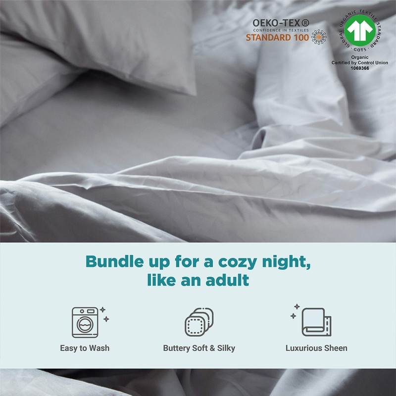 100% Organic Cotton Twin Light Gray Sheet Set | Sateen Weave | 3 Piece | 400 Thread Count | GOTS Certified | Soft Silky Shiny | Luxury Finish | Fits Upto 17" Deep Pocket Mattress | Sustainable