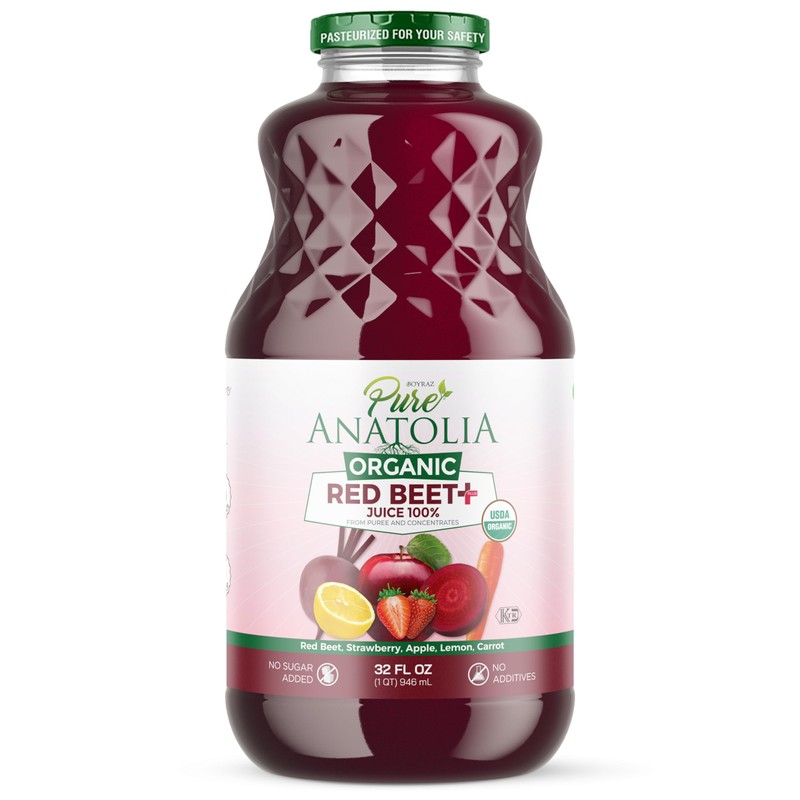 %100 Organic Fruit Juices by Pure Anatolia • Red Beet+ Reusable Glass Bottle 32 oz, USDA Organic, Gluten-Free, Vegan, No Preservatives, Non-GMO, Rich in Vitamin C, Immunity Boosting (%100 Carrot, Beet, Apple, Lemon)