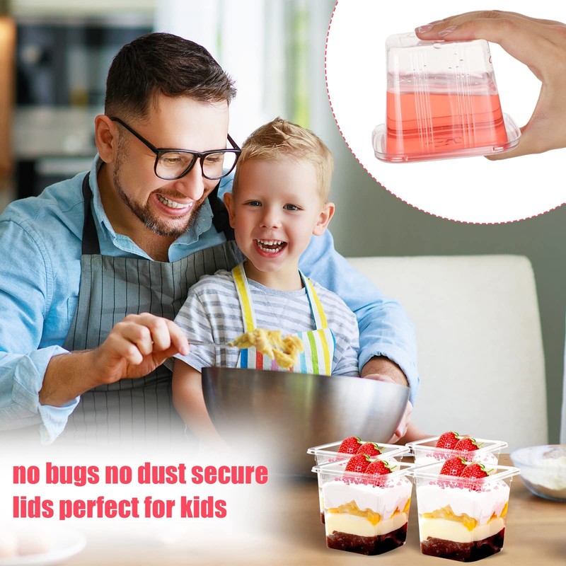 - Safe and Reliable to Food: the dessert cups with lids are made of PET material, lightweight and safe, no unpleasant smell, equipped with black sporks, convenient and practical, proper for children and adults to use, providing long term service for you