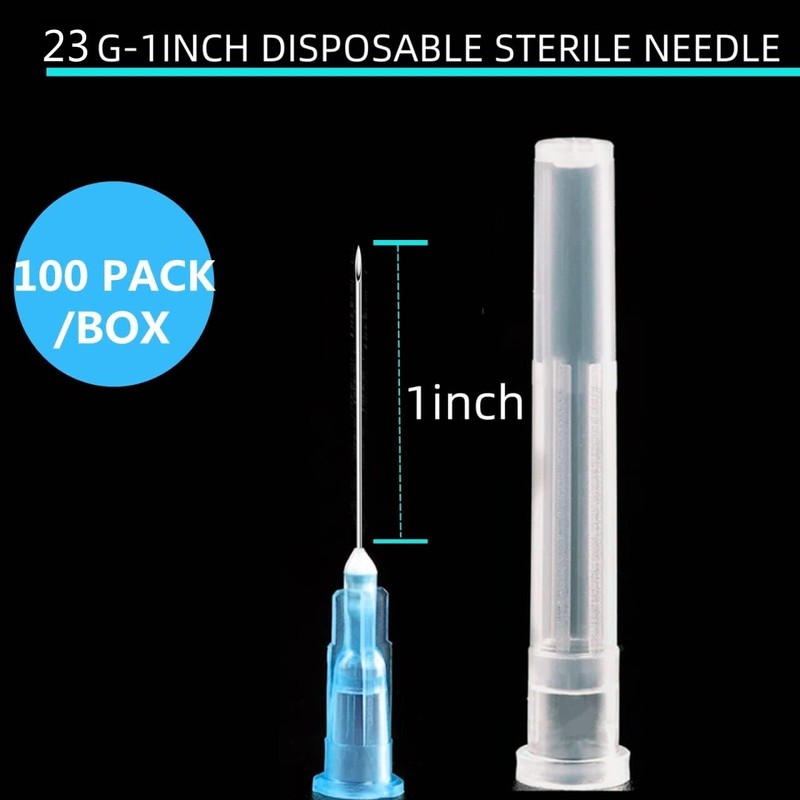 100 Pack - 23Gauge 1 Inch Sterile Disposable Injection Needle with Cap for Scientific Labs and Industrial Dispensing Needle Accessories