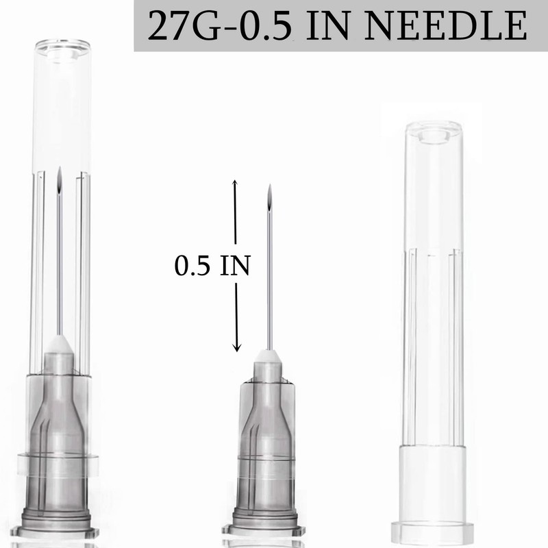 100 Pack 27Ga 1/2 Inch Stainless Steel Dispensing Lab Tools Accessories for Scientific Labs, Measuring and Refilling, Individually Wrapped