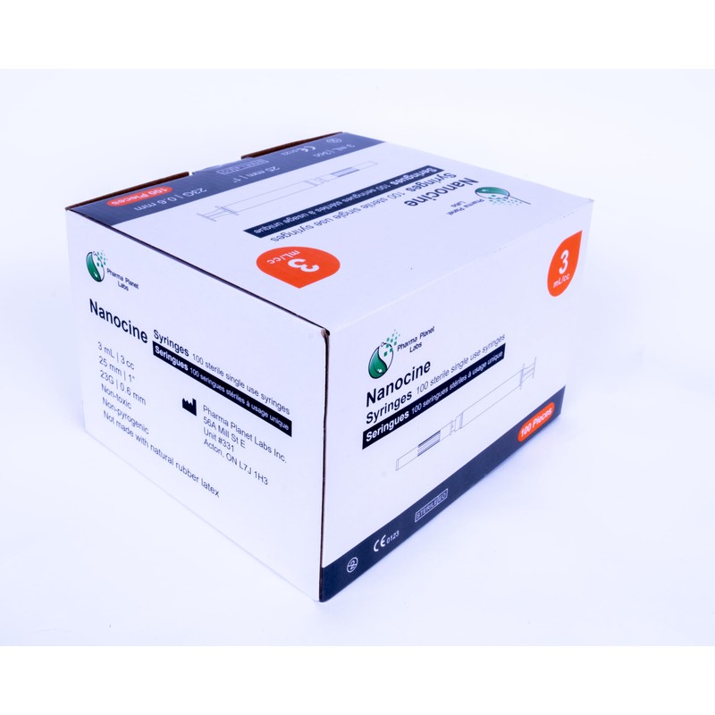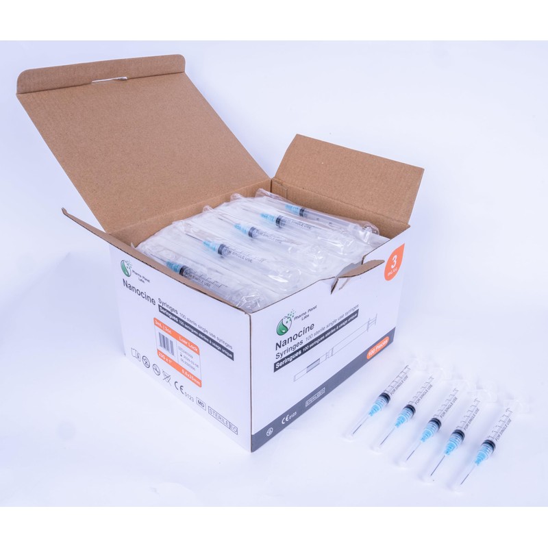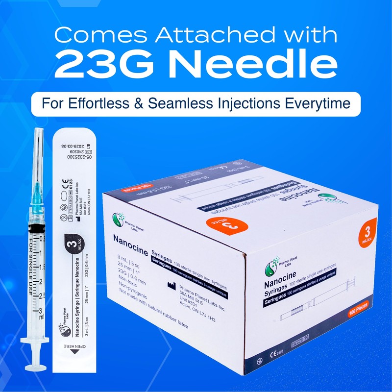 100 Pack 3mL Nanocine Disposable Sterilized 23G 1 Inch, Leur Lock