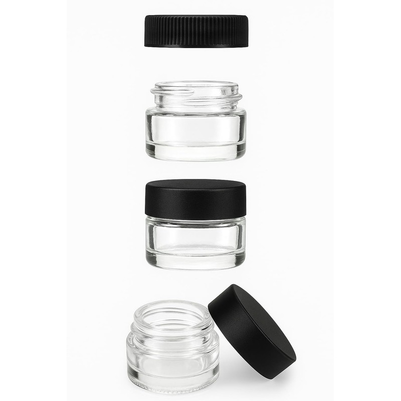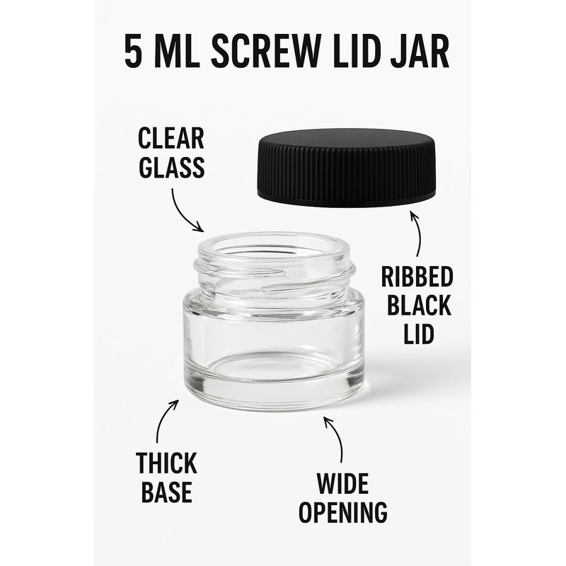 100 Pack 5ml Jar Screw Lid Black - Small Glass Cosmetic Packaging Container for Cream, Wax, and Balms