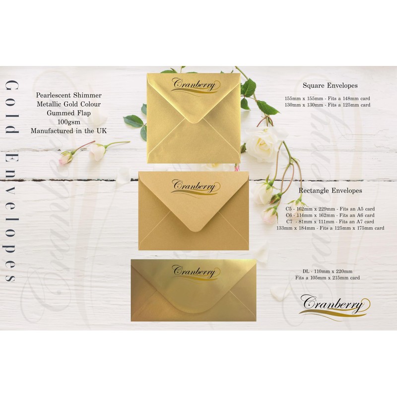 - With their subtle pearlescent finish and elegant gold tone, our 6x6 gold envelopes are perfect for weddings, celebrations, Christmas, milestone celebrations or upscale invitations.