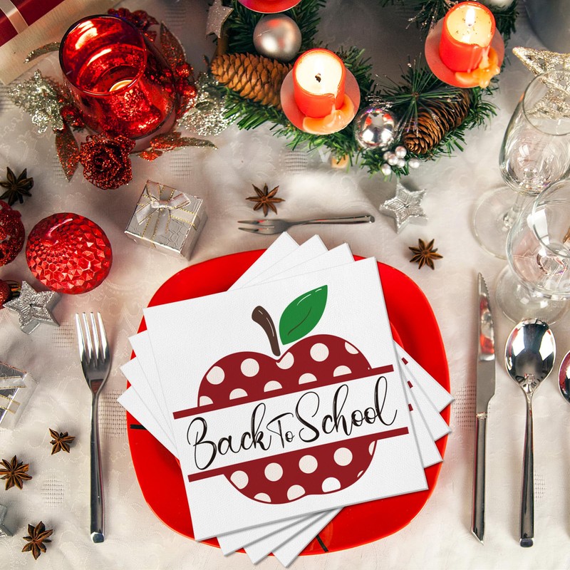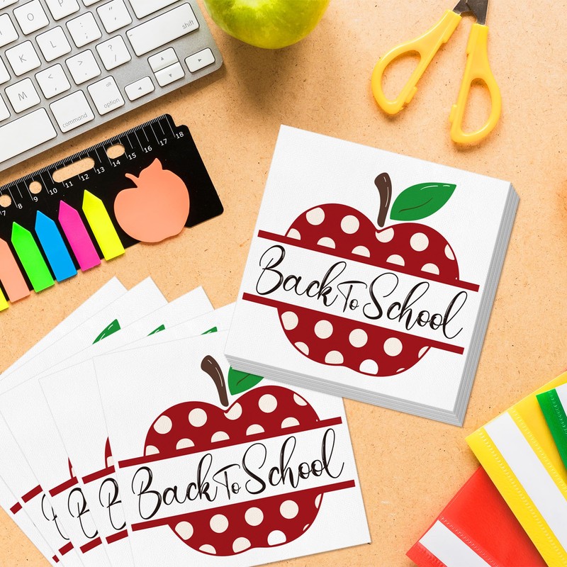 • Red Apple Design for Back-to-School Cheer: Each napkin features a playful red apple with white polka dots and a fresh green leaf, paired with cheerful “Back to School” lettering, instantly capturing the excitement of the new academic year. This iconic design resonates with kids and adults alike, making it perfect for first-day-of-school celebrations, teacher appreciation meals, or classroom decor that sparks joy.
