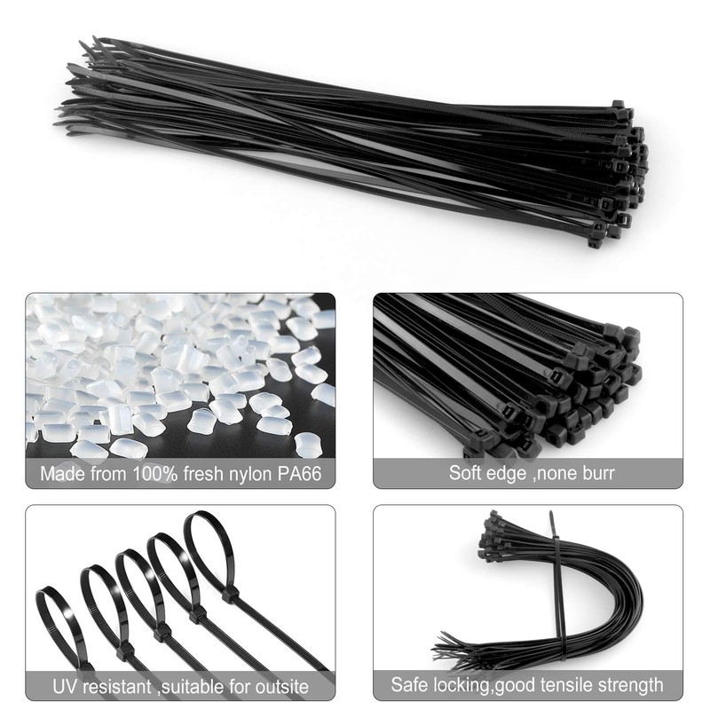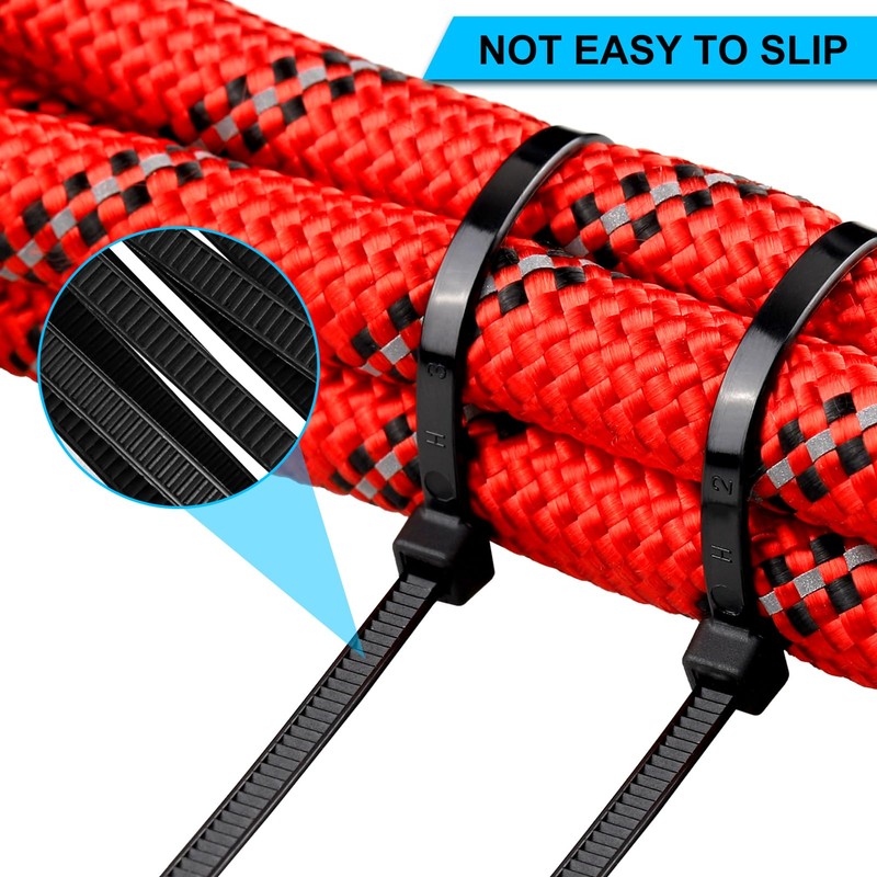Cable zip tie with self-locking fastener design, cables can be tied tightly.Wire ties with smooth and no burrs edges ,strong and durable locking,easy to operate,prevent being hooked when tightening.