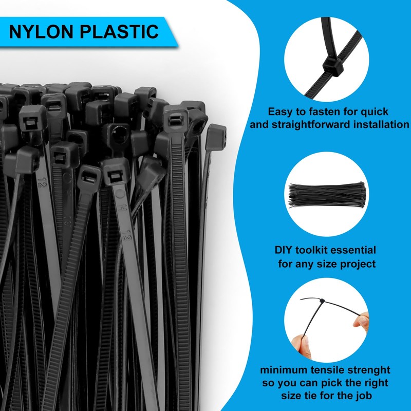 - WIDE RANGE OF USES: These black cable ties 6 inches are extremely versatile from DIY use to professional and commercial applications. Common uses include organising office cables, garden and plant support, securing objects for transport and bundling cables and wires.