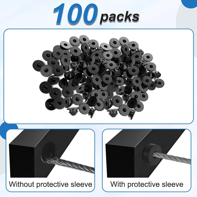 100 Pack Cable Railing Kit Rubber Grommets Protector Sleeve, Black 1/8" Cable Railing Post Protector Sleeves for 1/8" 5/32" 3/16" Wire Rope, Deck Cable Railing Kit for Indoor Outdoor Metal Posts