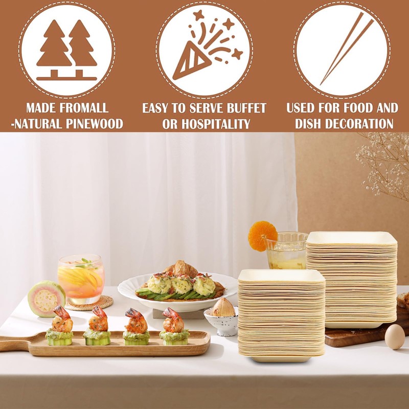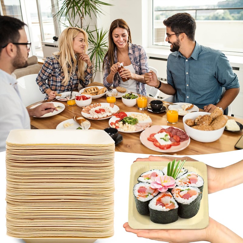 Made from natural palm leaves, the square bamboo plates 4 inches are free of harmful chemicals, ensuring safety during use. The material is durable and fully biodegradable, giving you peace of mind while helping to protect the planet.