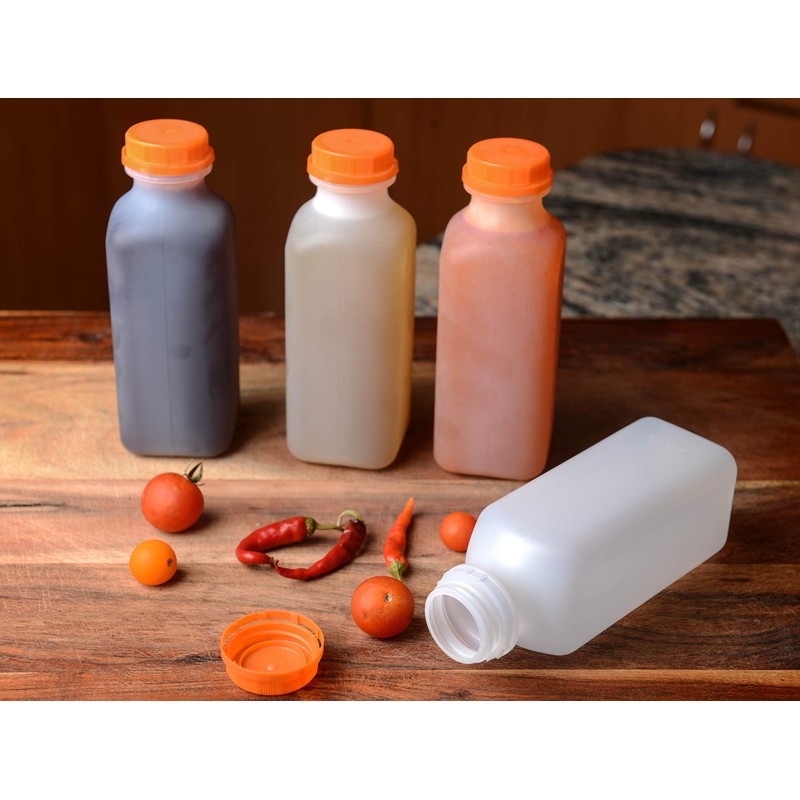 • PLASTIC JUICE CONTAINERS – decant larger drinks into our small pint size juice bottles to save money or to enjoy on the go. They’re ideal for lunch boxes, gym bags, backpacks and picnics. Being square in shape they can be stored easily, and the clear plastic makes identifying the contents and liquid levels effortless