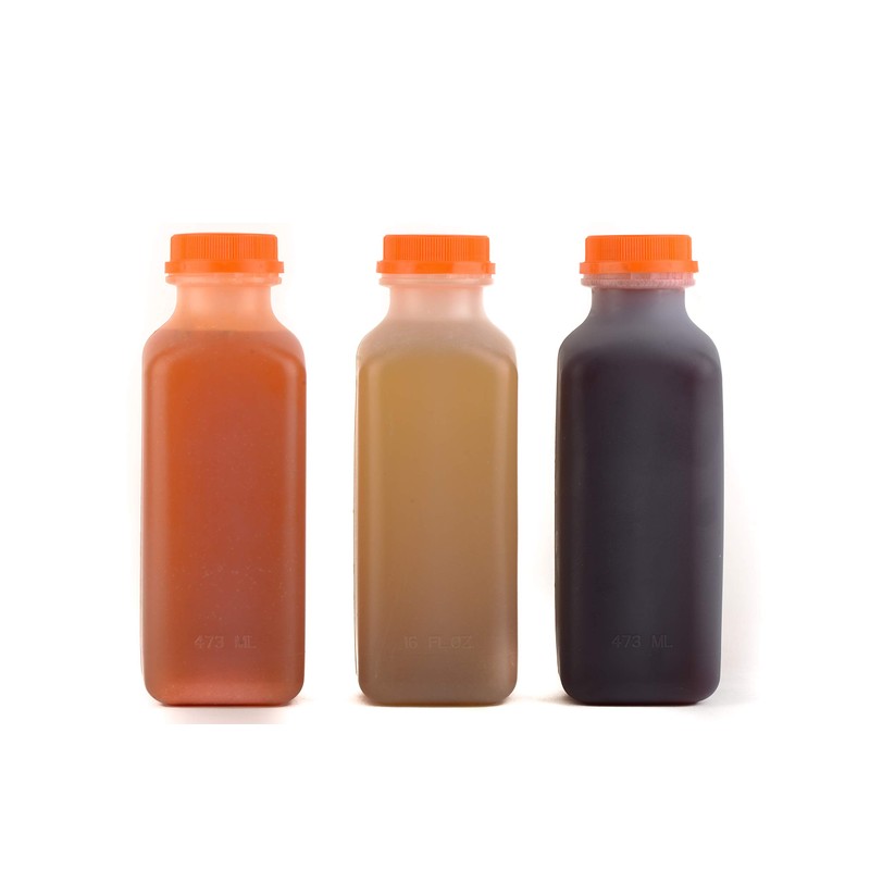 • PLASTIC JUICE CONTAINERS – decant larger drinks into our small pint size juice bottles to save money or to enjoy on the go. They’re ideal for lunch boxes, gym bags, backpacks and picnics. Being square in shape they can be stored easily, and the clear plastic makes identifying the contents and liquid levels effortless