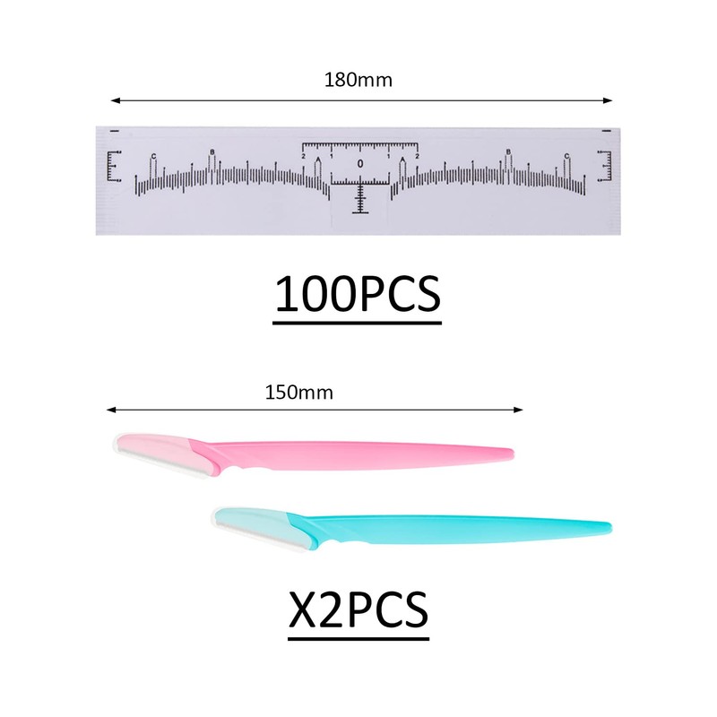 Quantity: 100 eyebrow rulers + 2 eyebrow cutting knives