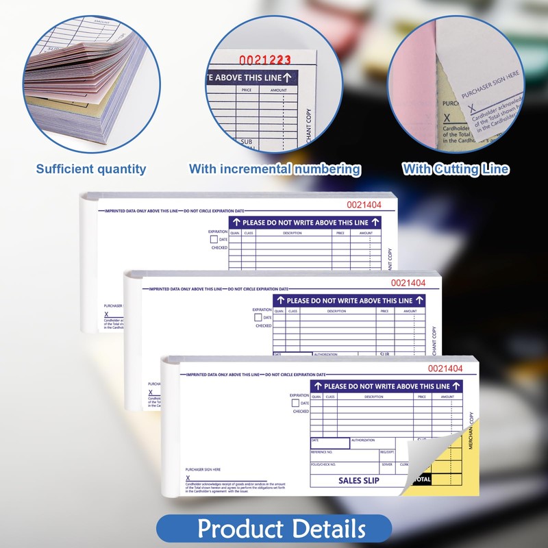 - With tear lines: You can easily tear off merchant copies and carbonless copy paper. With tear lines for your convenience. Our credit card sales receipt books are designed to meet your usage needs, ensuring that you have enough supply to meet your needs.