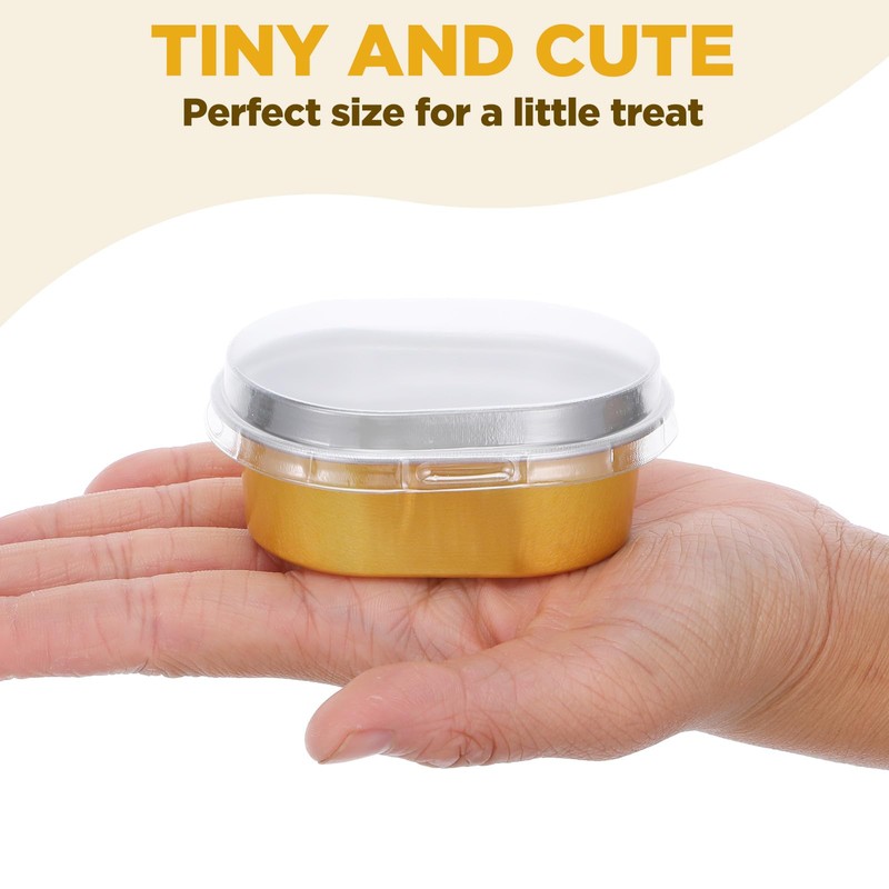100 Pack Mini Aluminum Baking Cups with Lids, 3 OZ Disposable Ramekins Muffin Liners Containers, Individual Pie Tin Cup for Dessert, Creme Brulee, Pudding, Cupcake