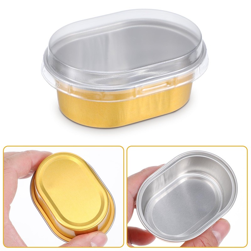 • Enough Quantity: You will get 100 Pack gold dessert box with lids. Size: 3" L x 2" W x 1" H, and 1.4" H with lid. These foil cups are great for parties and catering events or used in the hotel and catering industry.