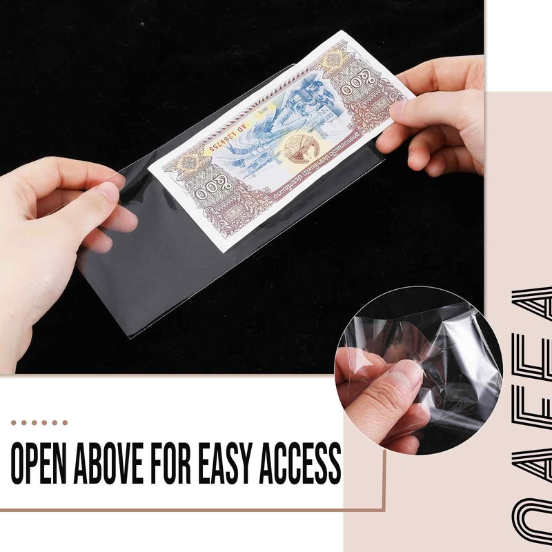 100 Pack Paper Money Holders Dollar Bill Sleeves Clear Money Sleeves Currency Collection Sleeves Protector Bag for Scratch-Resistant Display Paper Currency Collectors,6.8x 3.3inches