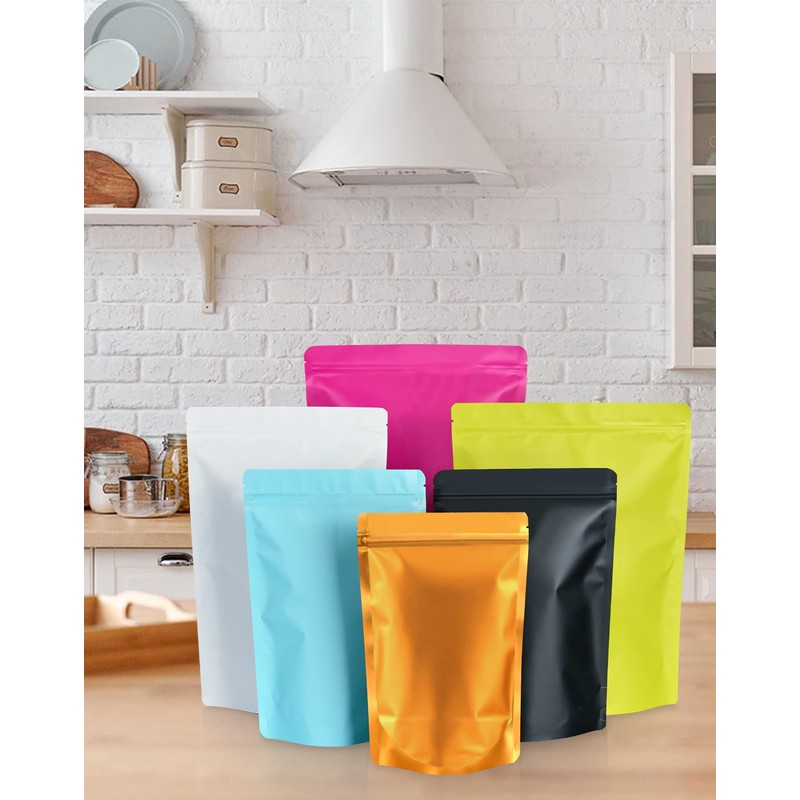 - High quality sealed bags:Perfect heat sealable bags for food with a thick barrier, matte color surface and aluminum foil Inside that enhance the durability and the aesthetics of the stand up pouches. The resealable zippers are strong enough to keep your food safe inside without popping open