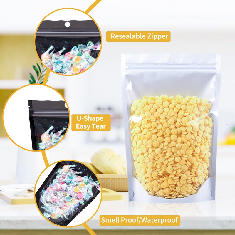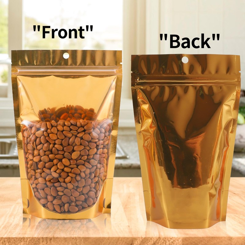 - 【High Quality Mylar Bags】Adopting high quality aluminum foil,resealable pouch with sealing strip,repeated use without deformation,can be stored for a long time. Excellent tear resistance, puncture resistance, waterproof and stability.