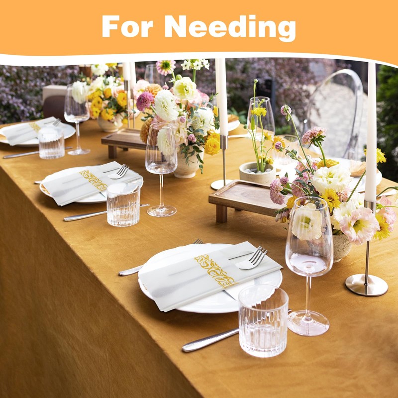 - Absorbent and Thick: our gold trim lined paper napkins are made of quality dust free paper material, which is strong and safe enough for the whole meal, and they have a nice water absorption, and will not fall apart easily even if they get wet