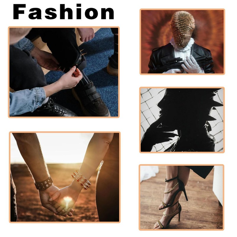 - Application: These punk spikes and studs are suitable for DIY various craft decoration, as a fixed or decorative items used. metal spikes clothing is amazing idea for decorating your bags, purses, garments, shoes, jeans, wristbands, hats, belts, dog collars, clothing, jacket, necklaces and more leather craft DIY making.