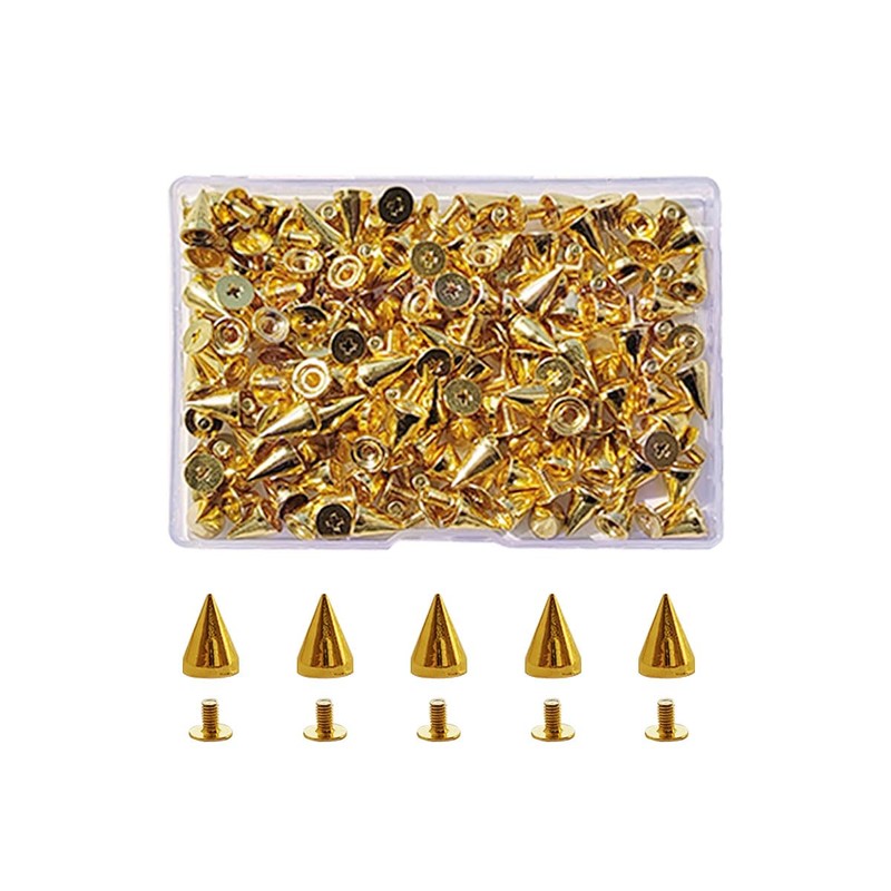 100 Pairs Cone Spikes, 7X10mm Metal Bullet Cone Spikes, Metal Tree Spikes for Clothing Leather Belts Cool Rivets (Gold)