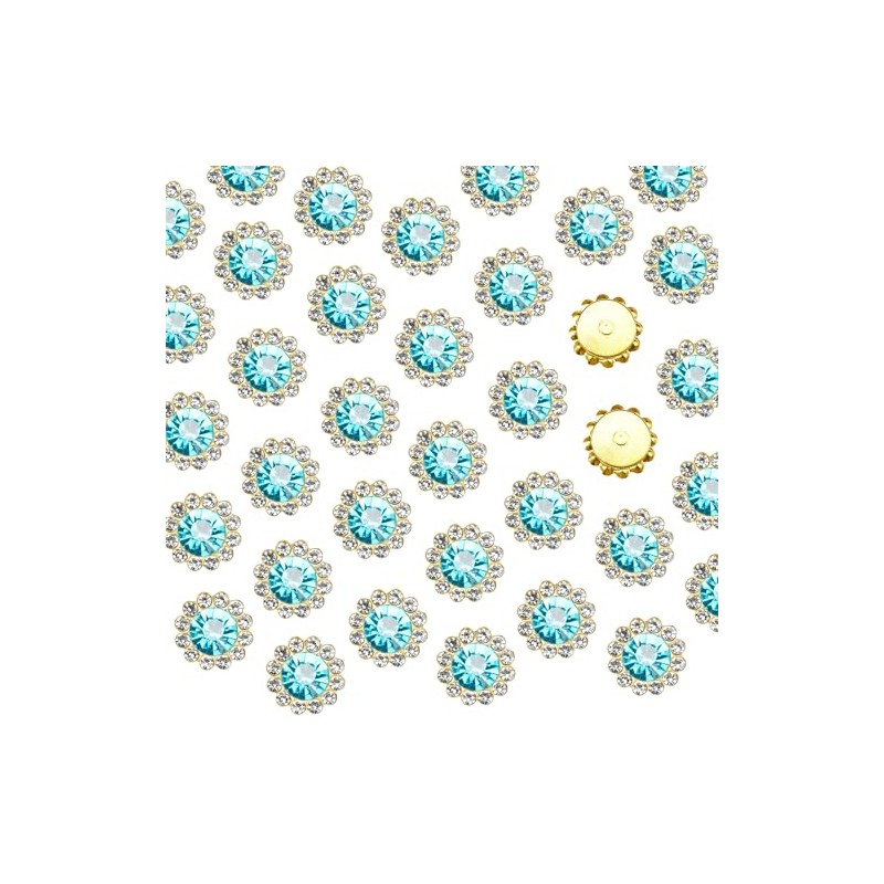100 Pcs 12MM Sew on Rhinestones Crystals Glass Metal Base Sewing Flower Claw Rhinestones for Clothes Shoes Earring Belt Crafts Sewing Accessories (11 Lake Blue)