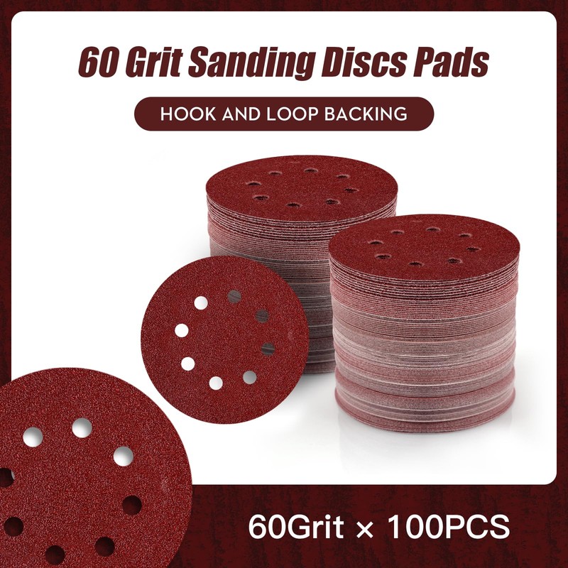 - Quantity:100pcs 60 Grit 5-inch 8-hole hook and loop sanding discs