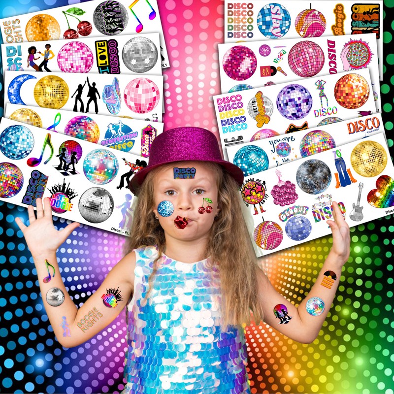 - Widely used: 70s Disco Ball Boogie Dance Groovy 1970s Retro Temporary Tattoos pieces are suitable for many occasions such as birthday party supplies, party decorations, party favors, party bags, DIY decorations, pool and the beach or gift. Temporary tattoos are the best party favors and goodie bags fillers ever for any kind of celebration!