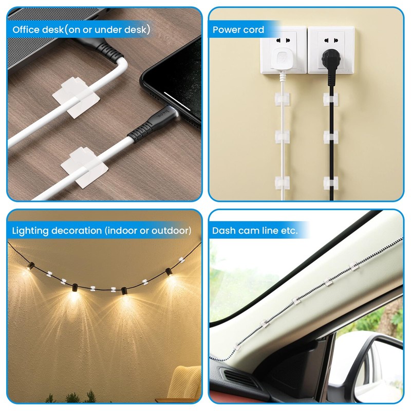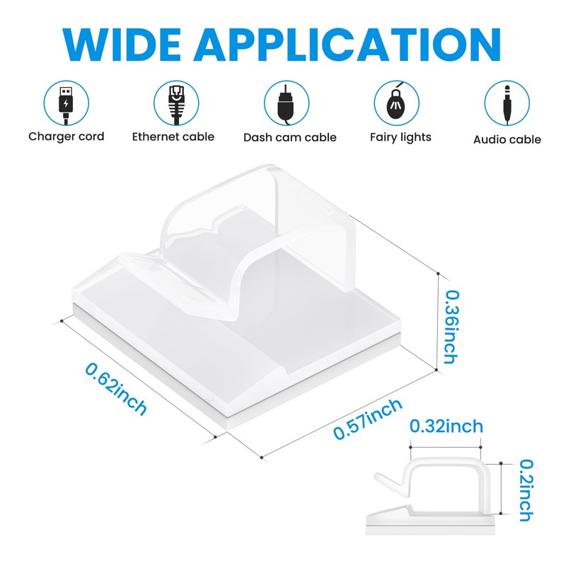 - Wide application: It can secure various cables such as USB cables, phone chargers, Ethernet cables, Cat 6 cables and car dash cam cables. Besides, it's helpful for cable management on the desktop as well as under the desk. Additionally, it allows you to hang some decorations and strings of lights, making it easy for you to decorate for Halloween, Thanksgiving and Christmas