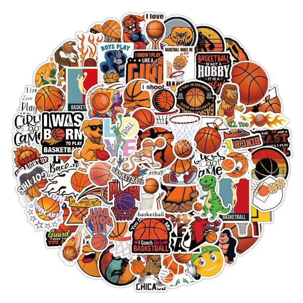 100 pcs Basketball Stickers Pack,Cute and Cool Vinyl Waterproof Stickers for Laptop/Skateboard/WaterBottle/Phone/Scrapbooking/Room Decor/Hard Hat,Stickers for Kids Boys Teens Girls,Autocollant Enfant