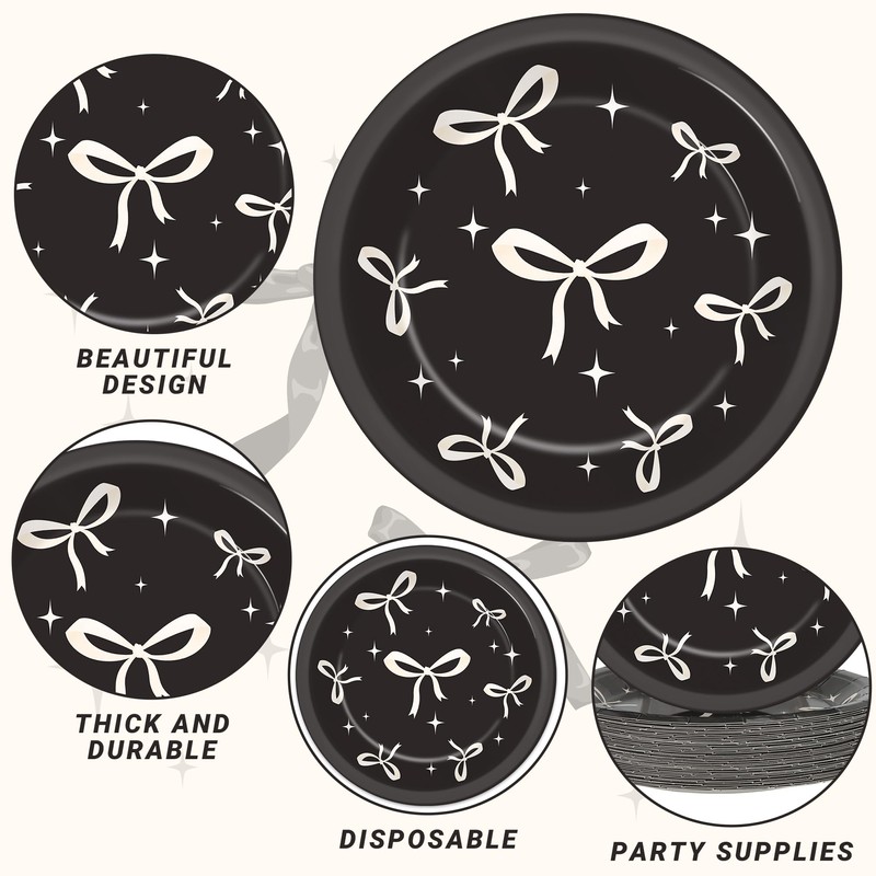- Beautiful design: Our birthday party decoration tableware comes in watercolor black and cream white, includes exquisite and elegant bow pattern, they will add a touch of romance to a meal or party.