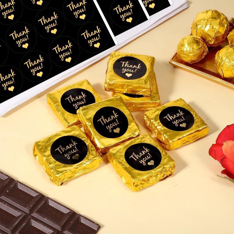 100 PCS Chocolate Foil Wrappers Packaging, 4" x 4" Gold Aluminum Foil Candy Bar Wrappers for Chocolate, Candy Wrapper with 120 pcs 'Thank You' Stickers for DIY, Wrapping, Packing Gifts