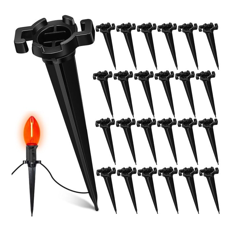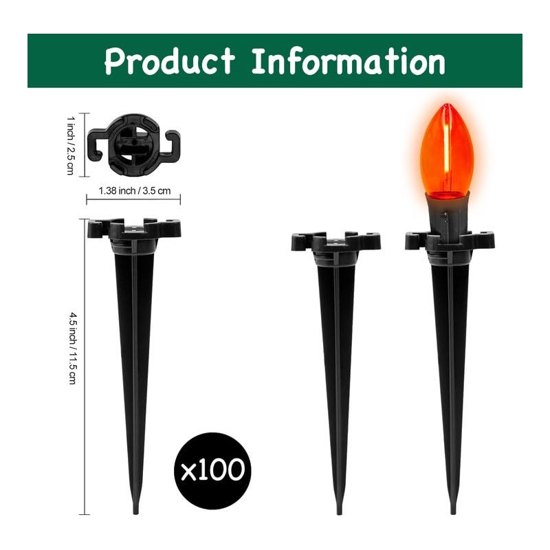 - 100-Pack Premium Universal Lawn Stakes: This comprehensive package contains 100 durable 4.5-inch C9 light stakes, offering robust support for both C7 and C9 string lights. Ideal for adorning your front yard, creating a magical garden setting, enhancing your patio ambiance, or illuminating walkways with charm and elegance.