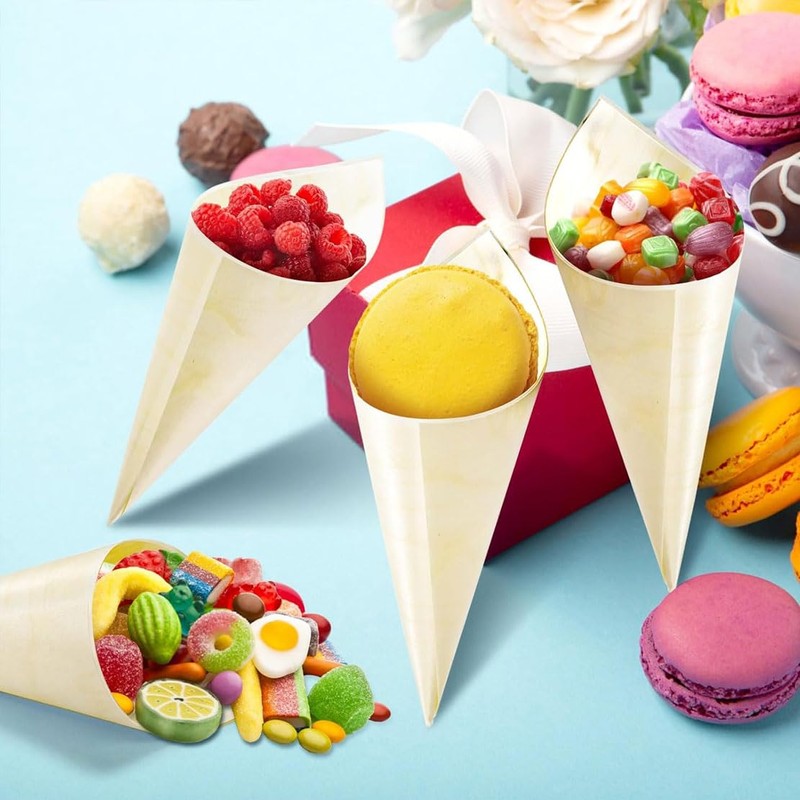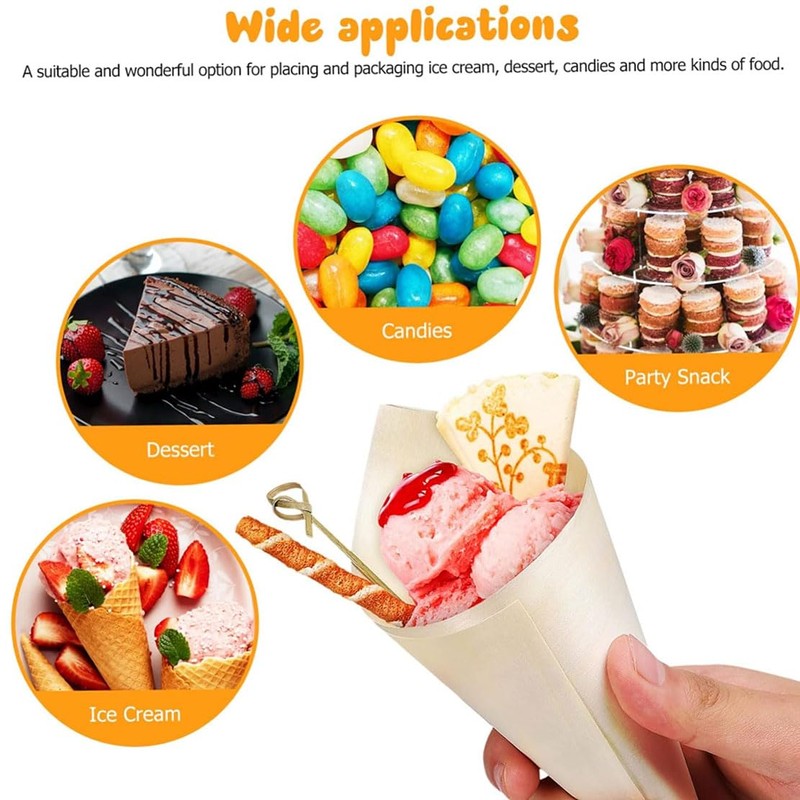 - 【Versatile Usage for a Wide Range of Snacks】:Our Disposable Wooden Cone Tasting Serving Wooden Cones are incredibly versatile and can be used to serve a variety of snacks. They're perfect for desserts, ice cream, candy, nuts, and even small portions of charcuterie. These cones are suitable for both indoor and outdoor events, such as weddings, parties, buffets, and food festivals. They can also be used in restaurants, food trucks, cafes, and other food - service establishments, making them a practical choice for any business or personal us