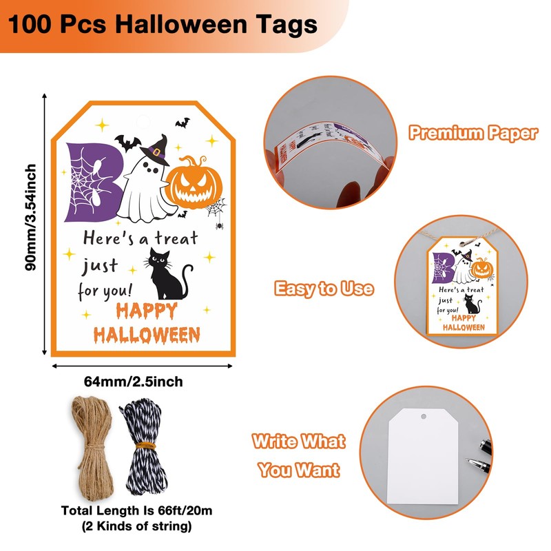 - Bulk Halloween Gift Tags – Boo Basket Must-Have: Package includes 100 ghost gift tags and 20 meters of two kinds of twine, neatly packed in a clear polybag. It’s an excellent value for those making you’ve been booed kits, Halloween party favors, neighborhood gifts, or organizing classroom Boo activities. A must-have Halloween supply for parents, teachers, and Halloween lovers