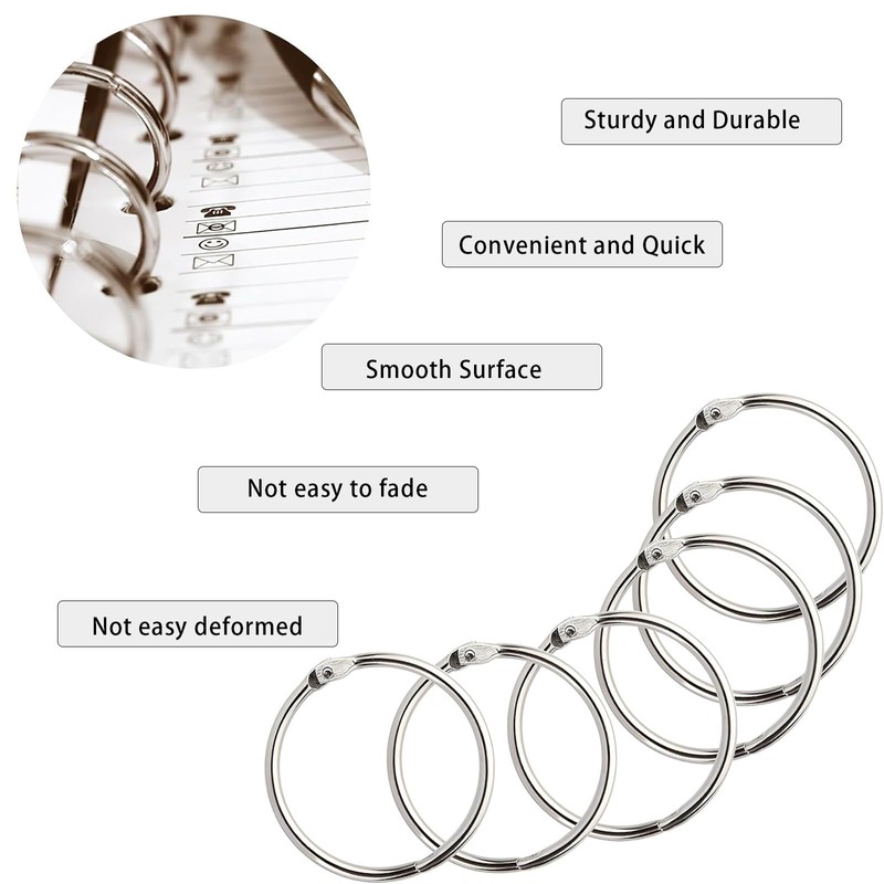 Perfect for creating custom notebooks, organizing loose papers, or crafting scrapbooks, these durable rings won't fade or deform over time.