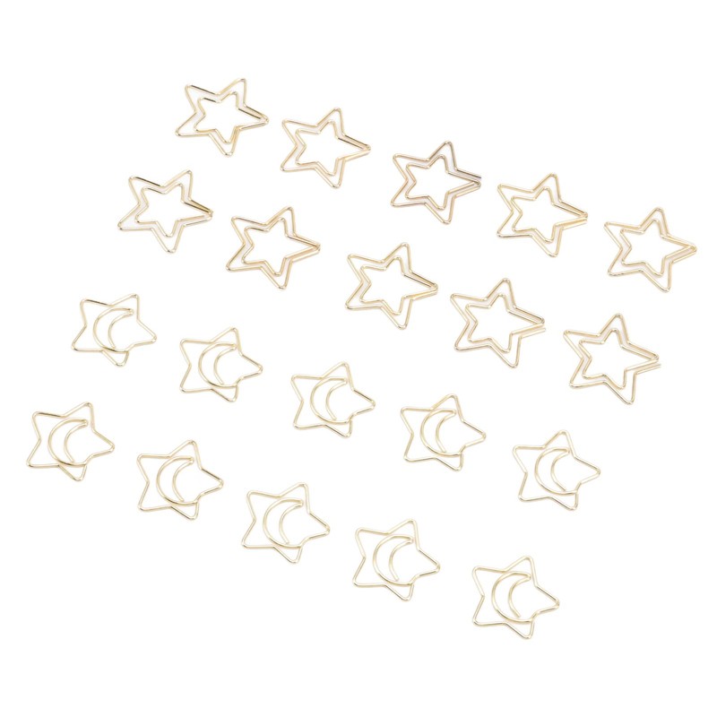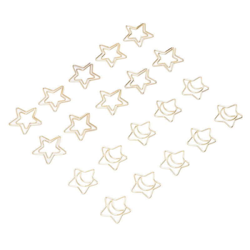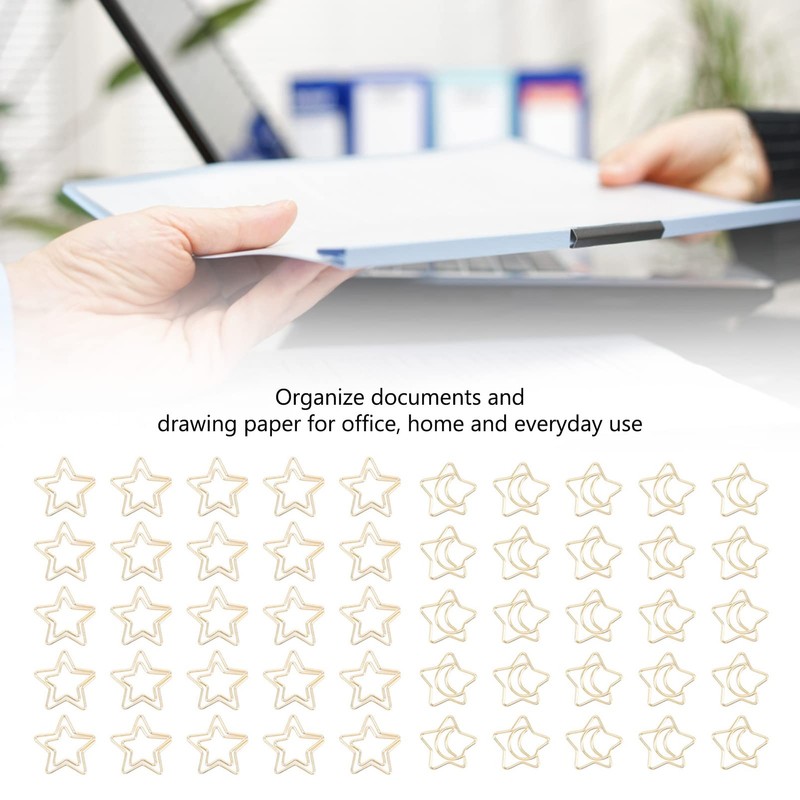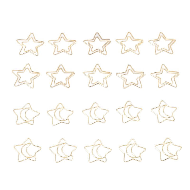 100 Pcs Metal Paperclips Golden File Organizer with Star Moon Pattern for Office School Document Organizing Gifts