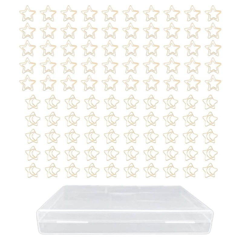 100 Pcs Metal Paperclips Golden File Organizer with Star Moon Pattern for Off...