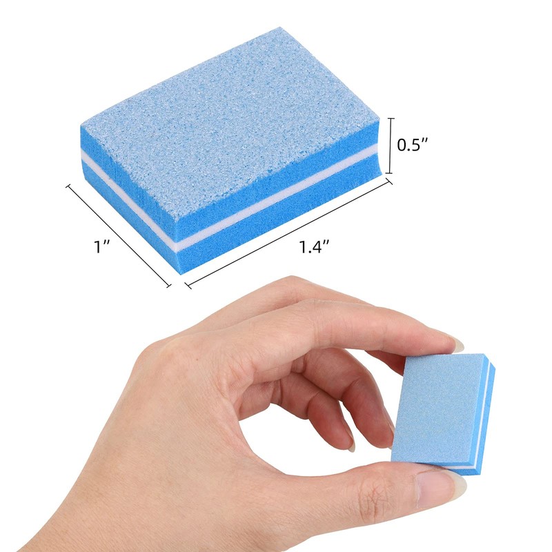 100 Pcs Mini Nail Buffer Blocks 180/100 Grit Sandwich Nail Buffer Washable for Nail Care(Blue)