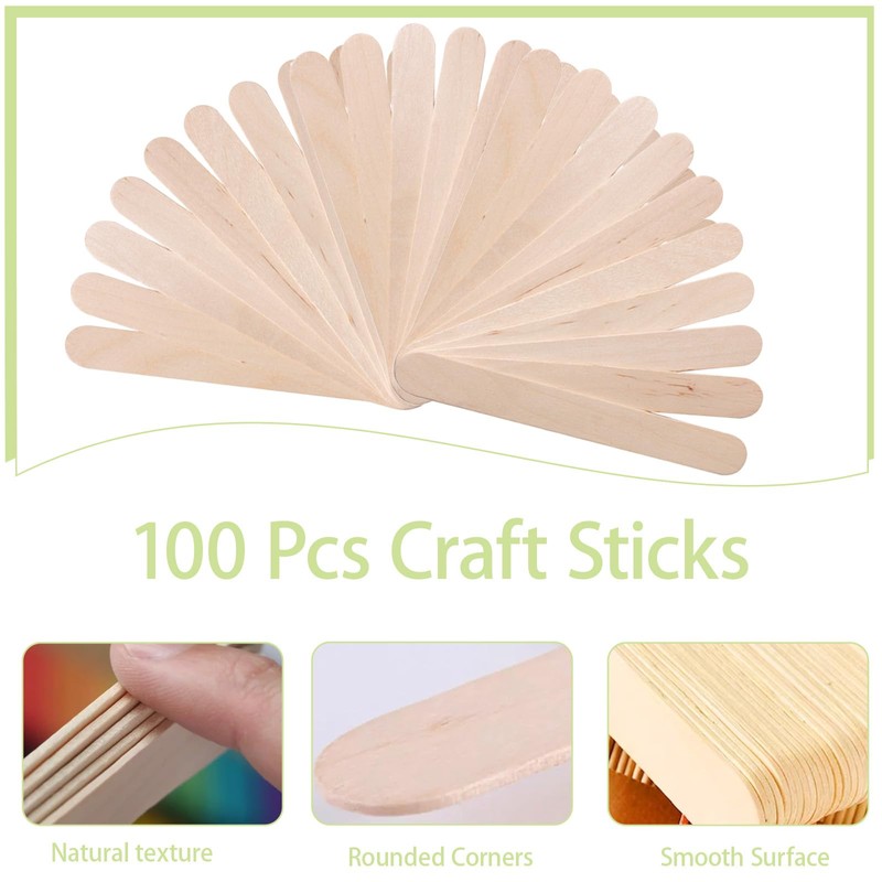 100 Pcs Natural Wood Craft Sticks, 5.91 IN Jumbo Size Popsicle Sticks for Kids Handicraft, Building Models & DIY Craft Projects - Safe, Smooth & Splinter-Free