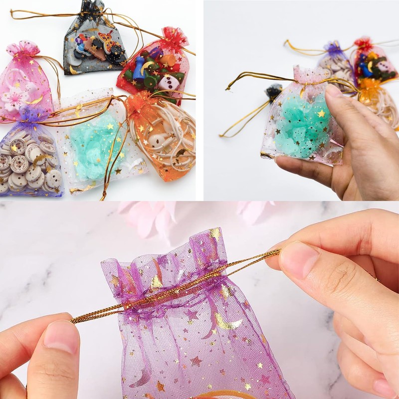 100 PCS Organza Gift Bags, 7X9cm Small Organza Bags Drawstring with Drawstring, Gift Bag Gift Pouches with Moon Star Pattern for Party, Jewelry, Christmas, Festival, Candy