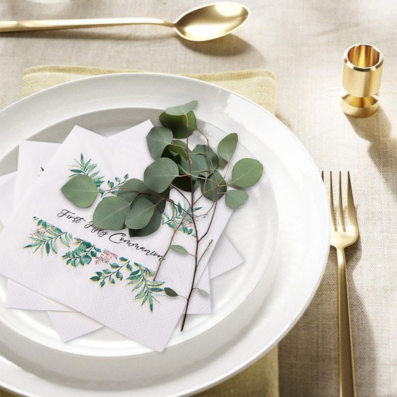 - Exquisite Design: The first communion napkin was designed with eucalyptus leaves and a cross pattern, elegant and fashionable, with clear patterns; They can be well paired with baptismal parties, church gatherings, or table decorations to create a fun atmosphere; They really add fun to your life, and your guests will appreciate these exquisite and beautiful designs