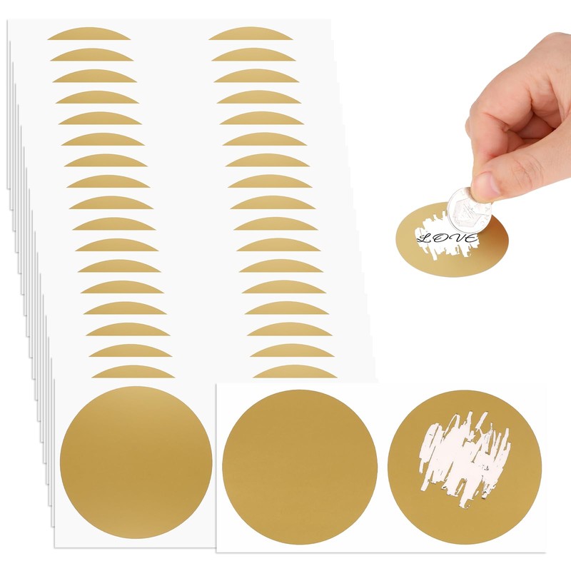 - 【Package Content】Each pack contains 50 sheets scratch off stickers, the color is gold, each sheet has two round scratch-off stickers,a total of 100, the size of the scratch-off stickers is 2inches(5 cm) in diameter. The quantity is enough to meet your daily needs