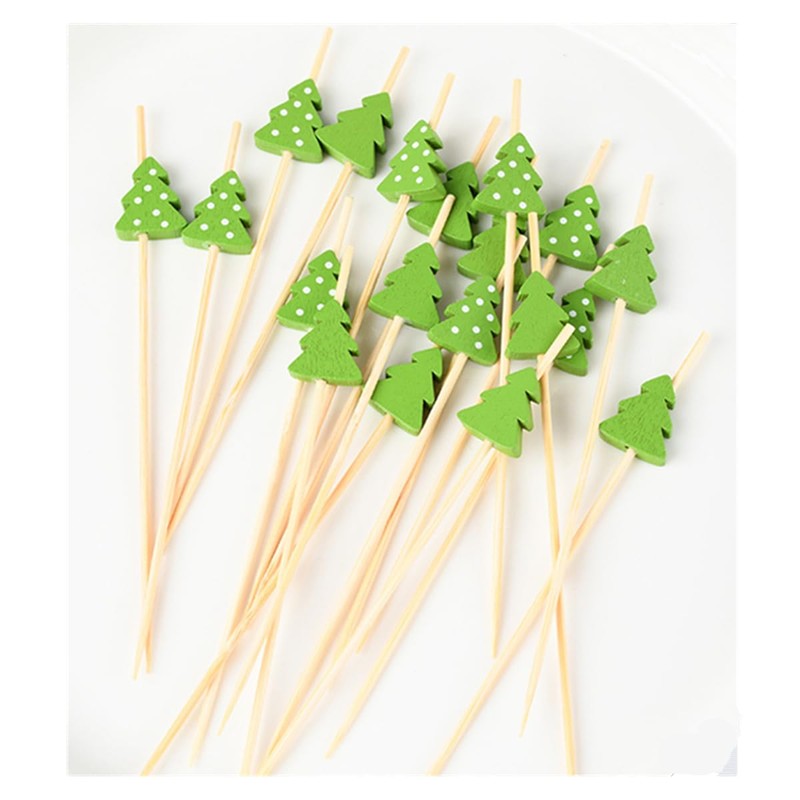 100 PCS Wooden Christmas Cocktail Picks,5 inch Bamboo Fruit Toothpicks Christmas Food Toothpicks for Drink Fruit Dessert Food Appetizers Decoration(Green Tree)