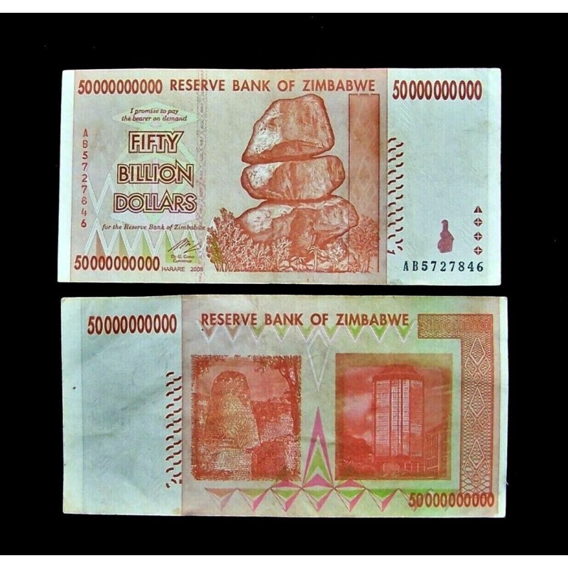 Up for sale are 100 Zimbabwe 50 Billion dollar banknotes-.