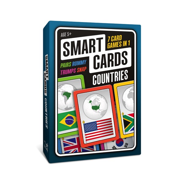 100 PICS SMART CARDS Countries & Flags, Great Gift, Stocking Filler, Travel Game, 7 games in 1, Pairs, Snap, Trumps, Rummy, Memory Quiz, Learn Facts, 50 Cards, Age 5+, 1-8 Players