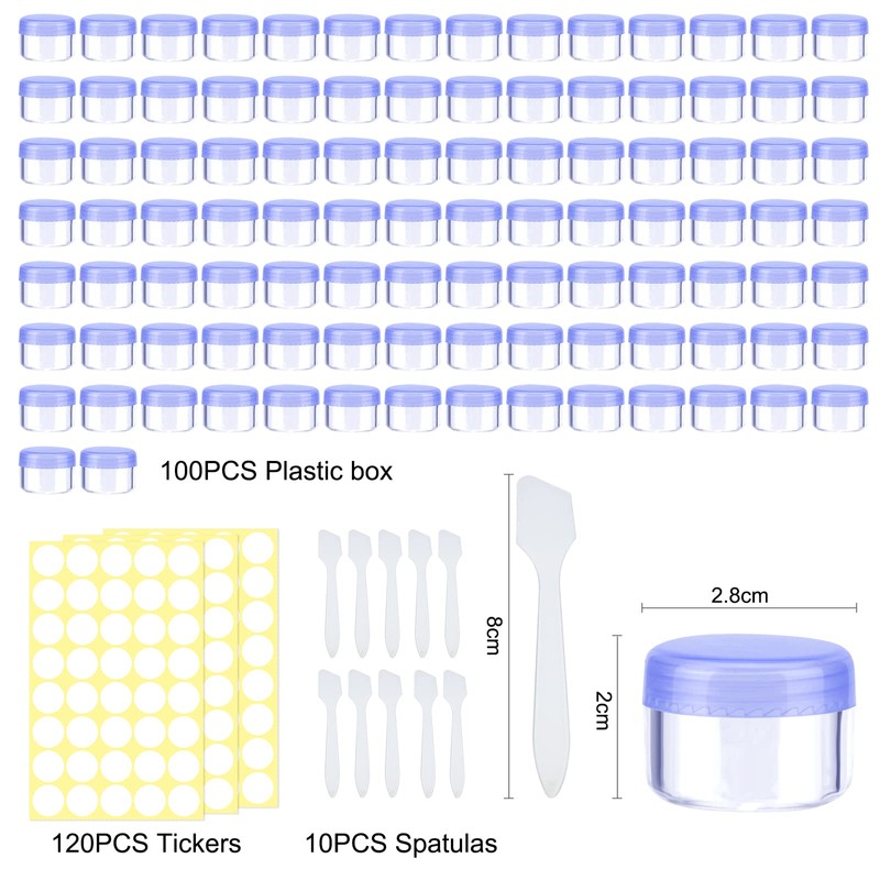 100 Pieces 5ml/5 gram Empty Containers Mini Clear Jar Sample Transparent Cream Cosmetic Bottle Containers with 10 Pieces Mini Spatulas,Label(purple)
