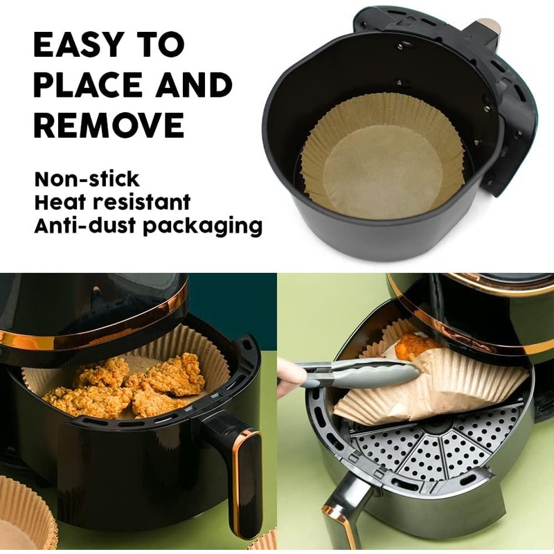 - MATERIALS These air fryer sheets are made of paper, so no residue of BPA plastic is left on the food. Thanks to the high melting temperature, you can get the most out of your air fryer without affecting the performance of the moulds.